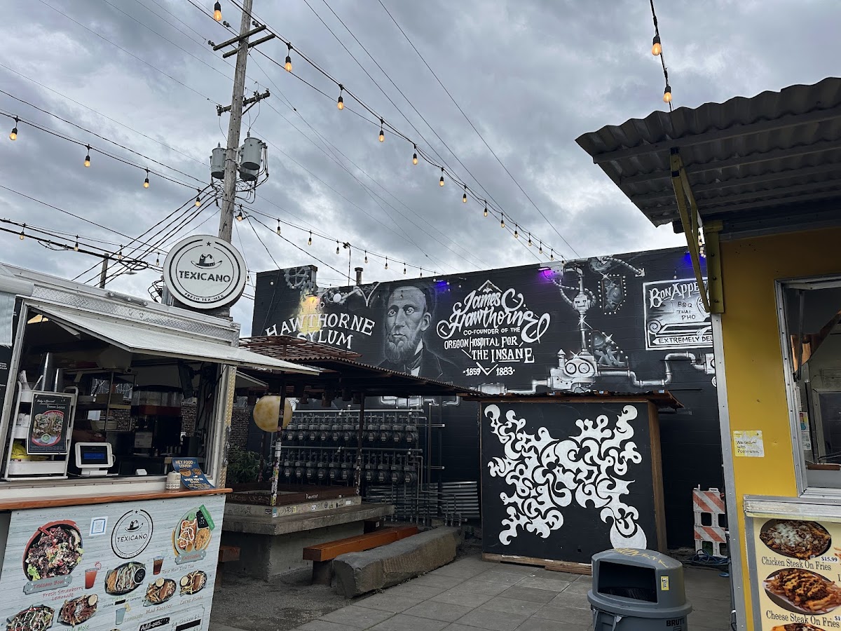 Hawthorne Asylum is a lively food court nestled on Portland’s SE Madison corridor, offering a vibrant mix of global street eats and casual dining vibes. This spot works best for groups who appreciate variety and relaxed, communal seating where you can sample everything from smoky ribs and brisket to Korean bibimbap, Thai chili burgers, and a Chicago-style hot dog all under one roof.